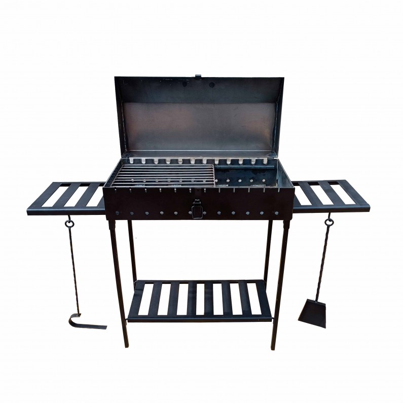 Мангал-барбекю на 12 шампурів з кришкою - це надійне та функціональне рішення для приготування шашлику, м'яса, риби та овочів на свіжому повітрі. Ідеально підходить для приватного будинку, дачі, пікніків та відпочинку на природі.