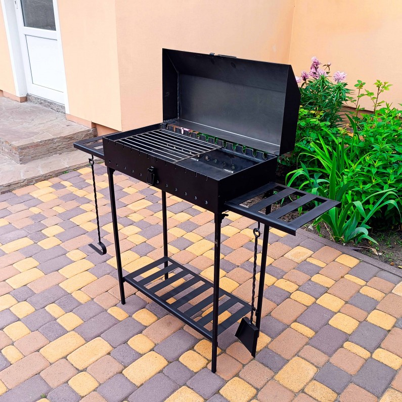 Мангал-барбекю на 12 шампурів з кришкою - це надійне та функціональне рішення для приготування шашлику, м'яса, риби та овочів на свіжому повітрі. Ідеально підходить для приватного будинку, дачі, пікніків та відпочинку на природі.