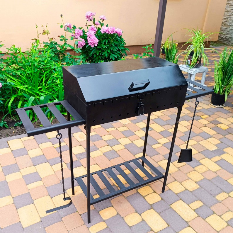Стильний дизайн: матовий чорний метал чудово впишеться у будь-яке подвір'я або зону відпочинку. Такий мангал з кришкою та решіткою гриль стане не тільки практичним, але й естетичним елементом вашої ділянки.