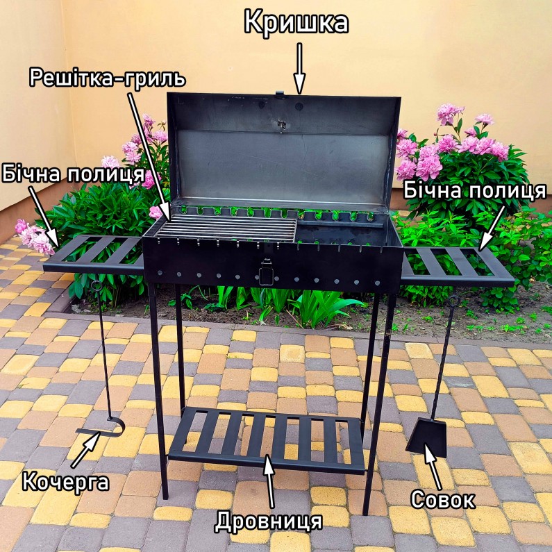 - Висота мангалу з кришкою: 85см
