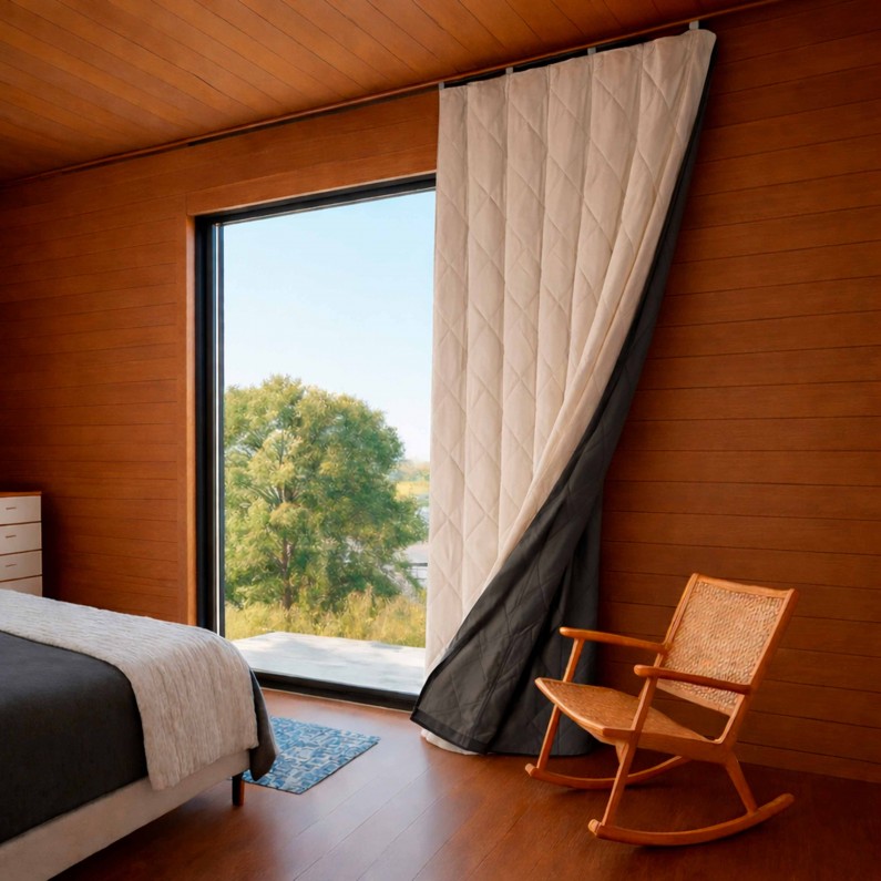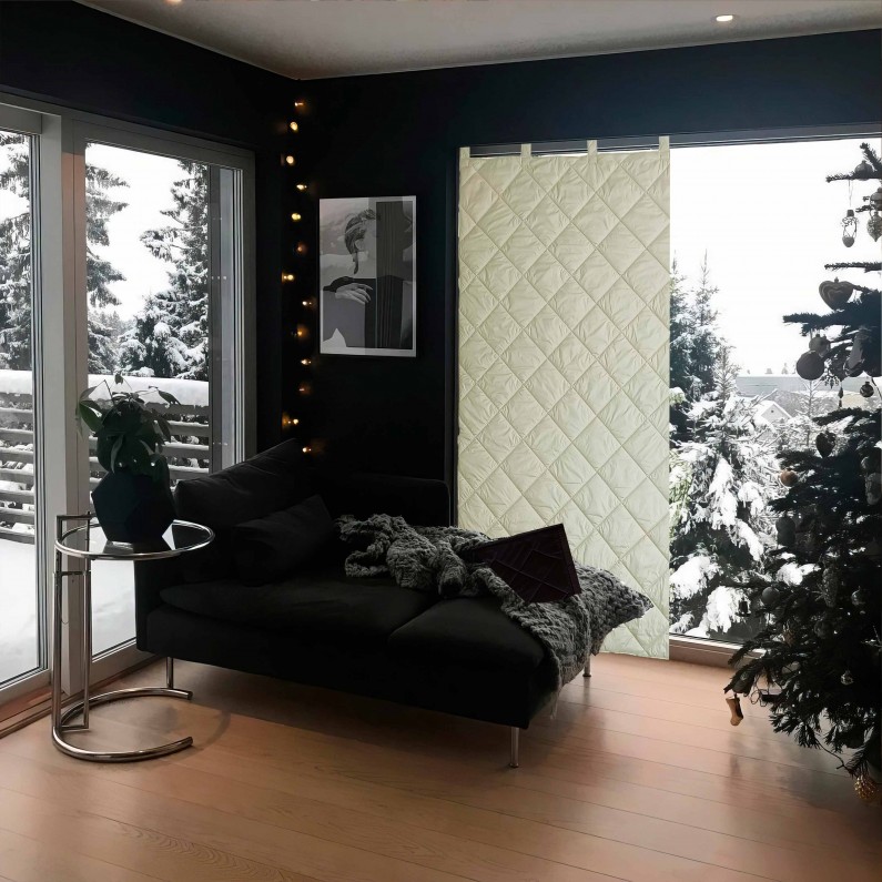 Утеплена термоштора — практичне рішення для збереження тепла та захисту від протягів. Завдяки багатошаровій конструкції та щільному утеплювачу штора ефективно утримує тепло взимку. та допомагає зберігати прохолоду влітку, створюючи комфортний мікроклімат у приміщенні.