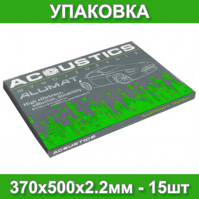Acoustics Alumat - якісний віброізоляційний матеріал для автомобіля, призначений для зниження вібрацій, шуму та резонансу кузова. Використовується для професійної та аматорської шумоізоляції дверей, даху, капота, багажника та інших металевих поверхонь. Матеріал виготовлений на основі бутилкаучукового шару з алюмінієвою фольгою товщиною 100 мкм, що забезпечує міцність, жорсткість, надійну адгезію та тривалий термін служби. Acoustics Alumat легко встановлюється без попереднього нагріву, що дозволяє швидко та акуратно виконати монтаж у будь-яких умовах.Де застосовується Acoustics Alumat